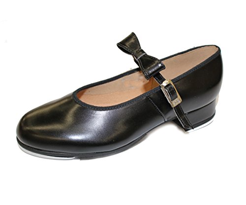 - Black introductory synthetic leather tap shoe from Bloch fitted with toe & heel taps. Removable matching bow that slides on & off the instep strap