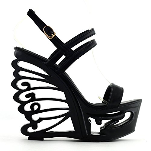 Best Seller! Show Story Black Strappy Bride Wedding Wedge Butterfly Heel Sandals Shoes,LF51801BK39,5UK,Black Review