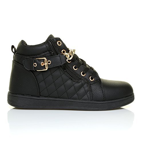 ShuWish UK offer SKYE Black Synthetic PU Leather Lace Up Flat Hi Top Trainers with Gold Chain Size UK 6 EU 39. This awesome product currently limited units, you can buy it now for £20.99, You save -