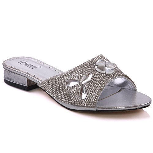 Best Seller! Unze Womens 'Semi' Rhinestone Detailing Slippers 8 UK Silver Review